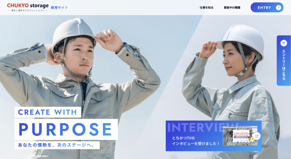 | ABOUT | 中京ストレージ 様のホームページ制作を行いました。 フレッシュな印象の採用サイトを制作させていただきました。 |