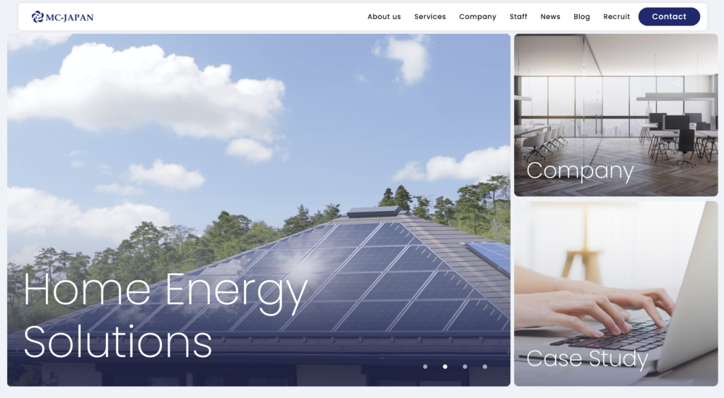 | ABOUT | MC-JAPAN 様のホームページ制作を行いました。 ブランディングに合わせたコーポレートにデザインさせていただきました。 |